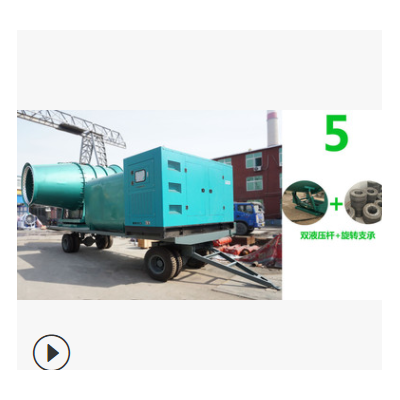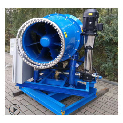 大型車載除塵霧炮機主要由電機、高壓風機、水平旋轉裝置、仰角控制裝置、導流筒、霧化噴嘴、高壓泵、儲水箱。 1、 增壓裝置有電機和壓力機組合一起,作用是利用電機動力推動高壓泵把儲水箱的水吸入并進行加壓后輸出,輸送到噴頭。 2、 強風導流裝置有風機和風力導流筒組成,作用是把風機的強風氣流集合定向并強力噴出,目的是把水霧順向噴射。 3、 結構和儲水單元是機械框架和一定容積的儲水箱組成,作用是為霧炮機提供噴射水源,框架也可以設計安裝輪式行走。 4、 霧化噴嘴裝置是有高壓水管和多個霧化噴嘴組成,安裝在氣流導流筒的前面出口位置,作用是把壓力機來的水流充分霧化,配合強風氣流進行遠程噴射。 5、 動力裝置是有發動機和功能電氣控制柜組成,作用是為壓力機和風機及提供標準功率電能(也可以根據需要進行電網直接供電),電氣控制柜作用是控制整套霧炮機設備的噴霧工作狀態(也可設計遙控功能和無人操作控制,以適應不同場合的需要)。