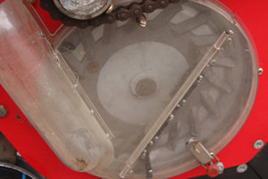 播種總成裝有防止麥秸纏繞裝置,有利于一年兩熟的夏播地作業(yè)。排種器種子室內(nèi)設(shè)有擋種毛刷,將種子室的有效室間與無效空間隔離開,種子只能處在有效空間內(nèi),可以用盡種子。整臺(tái)機(jī)器通過唯一的變速箱改變株距,可產(chǎn)生六種株距,只要改變變速箱傳動(dòng)比,就可改變整臺(tái)機(jī)器的各行株距。