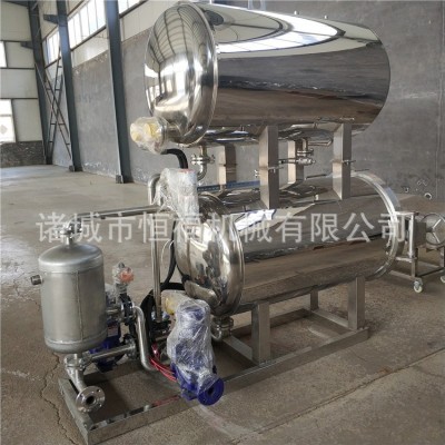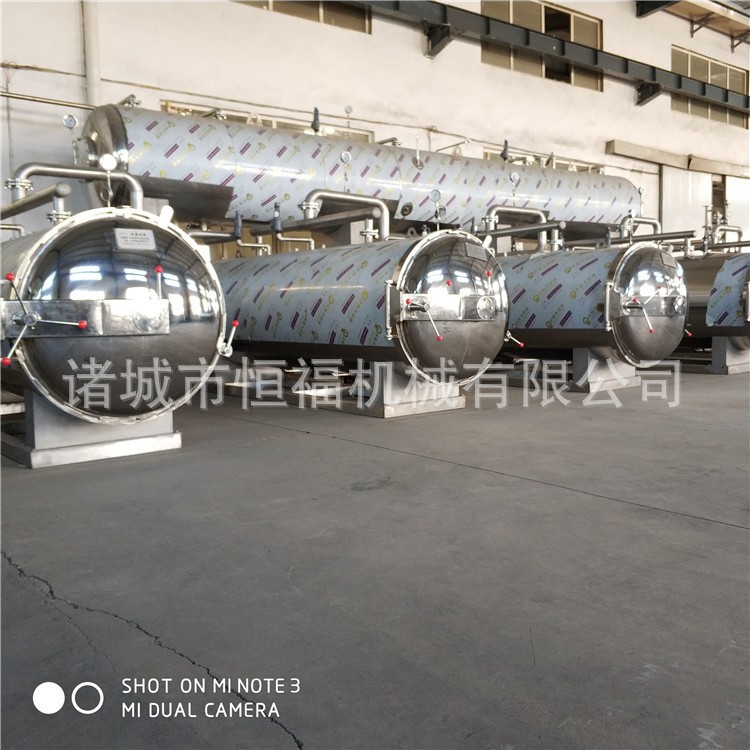殺菌鍋又名殺菌釜,殺菌鍋的主要作用是消滅食品中對人體有害的細菌,同時抑制細菌的增長,從而延長食品的保質期。很多客戶以為產品真空包裝以后就可以延長時間的保質期,不需要殺菌。實際上這種理解是錯誤的。真空包裝以后只能抑制喜氧菌的繁殖,食品中還有很多細菌是厭氧菌,所以如果真空包裝之后不殺菌,厭氧菌的繁殖速度會很快,從而產品會變壞。殺菌鍋的主要作用是在121攝氏度高溫的環境下,在對產品口感影響少的基礎上,殺死食品中的細菌,從而延長食品的保質期。
